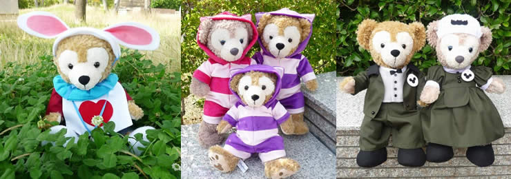 元々ダッフィーは、裸のくまちゃんで販売されていました。なぜ裸?お洋服は別で販売されていましたが、可愛いお洋服が全く無い。ダフ君やメイちゃんは、一人一人お顔が違います。なのにTDSで販売されているお洋服を着せたら、被ってしまい皆様同じになってしまいます。ならば、自分でお気に入りのお洋服を作ってしまおうと思いました。オリジナルのお洋服を着せてインパすると、キャストさんや見知らぬ方から声を掛けられ、お写真を撮って頂くようになり、そのうち周囲に沢山集まってきて、お洋服を売って欲しいという声を沢山頂きました。そこから、コスチューム製作は始まりました。